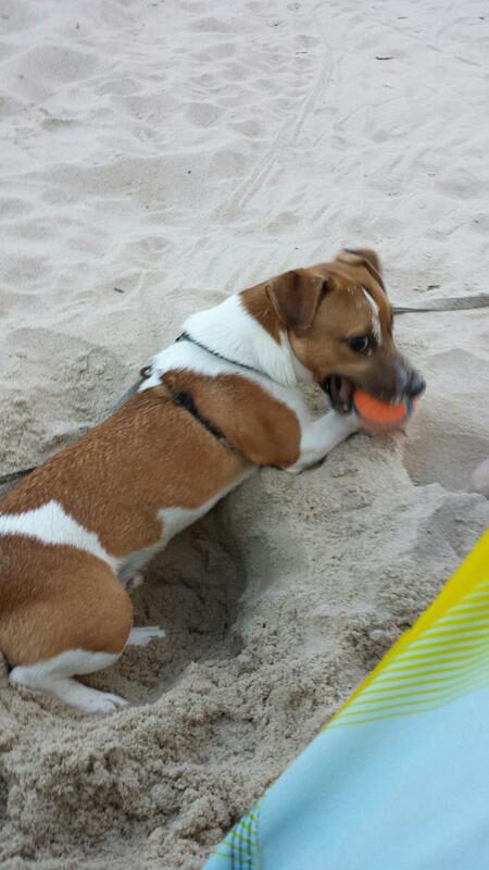 Brady is doing great & is a fantastic companion. What a great personality! I have attached dis neutering certificate & a copy of his original vaccination record (so that you will know who he is). I am so glad that my research lead me to you. Brady is in excellent health nad draws crowds at the beach because he is so good looking! Even my Vet is jealous! Meeting you and seeing how well you carefor your dogs and the loving home they come from made me feel secure in getting my buddy from you. I will certainly refer anyone that ask about getting a Jack to contact you! I have also attached a few photos. Brady loves the beach & swimming! if anyone ask for a first hand reference for you please don’t hesistate to give them my number. I have nothing but high praise!